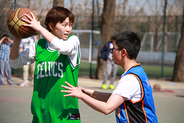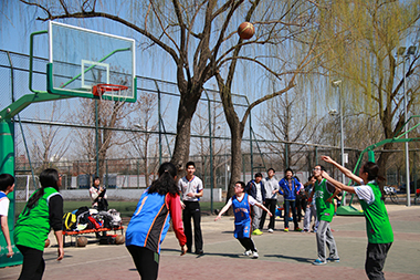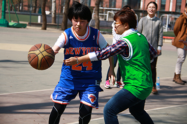 2015年3月23日中午12点,2014级女篮与2013级女篮的比赛在篮球场准时开赛。