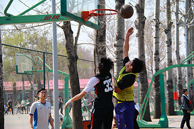 3月24日星期二中午12点,体育传媒系2015年篮球联赛迎来14级与13级男篮对抗赛。哨响之后,14级男篮争得球权。开场第三分钟,14级0号球员乔泽豪假动作突破上篮得手,为14级拿下两分。在接下来的两场比赛中,比分不断交替变化。中场结束时,场上比分为16:19,13级以3分优势,领先14级。