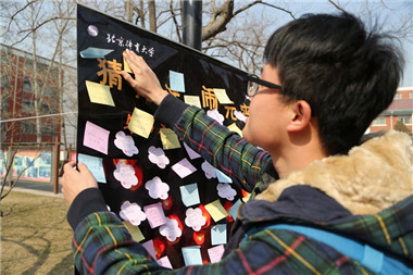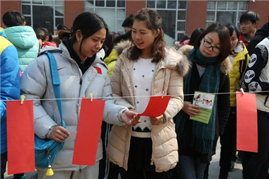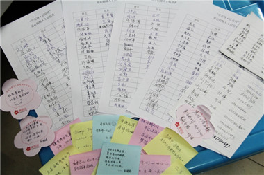 既能以捐书的方式为农村孩子献上一份爱心同时又能通过猜灯谜为节日增添一份喜庆气氛,这样的设计使得这次活动十分受大家的欢迎。特别在全校的同学们上午课程结束,小小的摊位迅速被猜灯谜的人潮吞没,每一张写着谜面的彩纸前都凑集了几位绞尽脑汁的挑战者,灵光一闪和恍然大悟的喜悦不时从人群中传出。第一位猜中灯谜的是学校食堂的一位校工,她用自己的生活经验成功猜对,写着“好好学习”四个字的第一张心愿卡也被她亲手挂在了最显眼的位置。在猜灯谜的人群里有逸兴十足的老师、有成群结伴的同学、有充满好奇的留学生、有让人惊喜的小朋友……