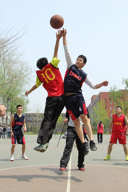 2013年4月27日,体育传媒系春季篮球联赛迎来了男篮决赛:10公关和10新闻。开赛前,场地周围就已经站满了观赛的观众,团总支书记黄诗薇老师、10级辅导员徐欣老师也来到了现场为队员们加油。值得一提的是,卫冕冠军10新闻的先发中锋张殿聪因伤没有出场,这让观众对于10新闻的战术及表现充满了期待。比赛开始前,双方队员友好握手,还在场地边缘挂上了“新闻公关心连心,10传媒一家亲”的横幅。场下他们是好友,场上他们是对手,究竟两队将为我们送上什么样的比赛呢?