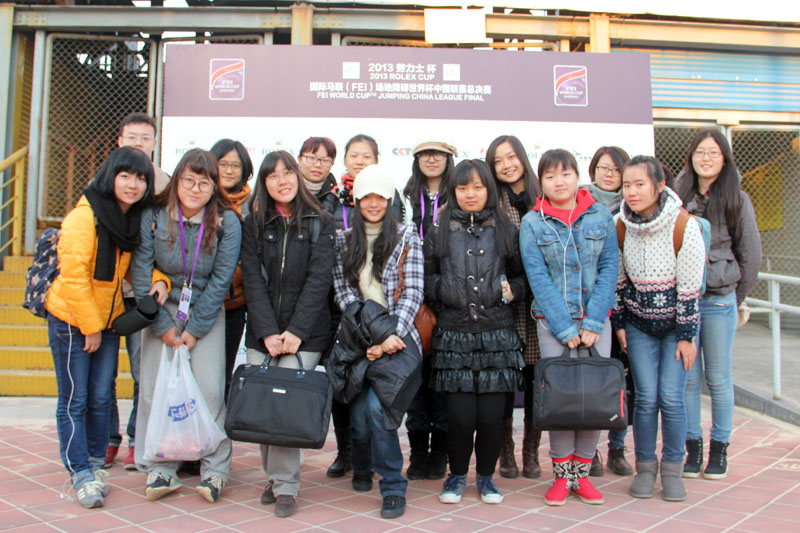 2013年10月12日至20日,2013国际马联(FEI)场地障碍世界杯中国联赛第二站、第三站的比赛在朝阳公园隆重举行。体育传媒系2011级20位同学有幸以志愿者的身份参与本次赛事媒体宣传及有关的媒体服务工作。