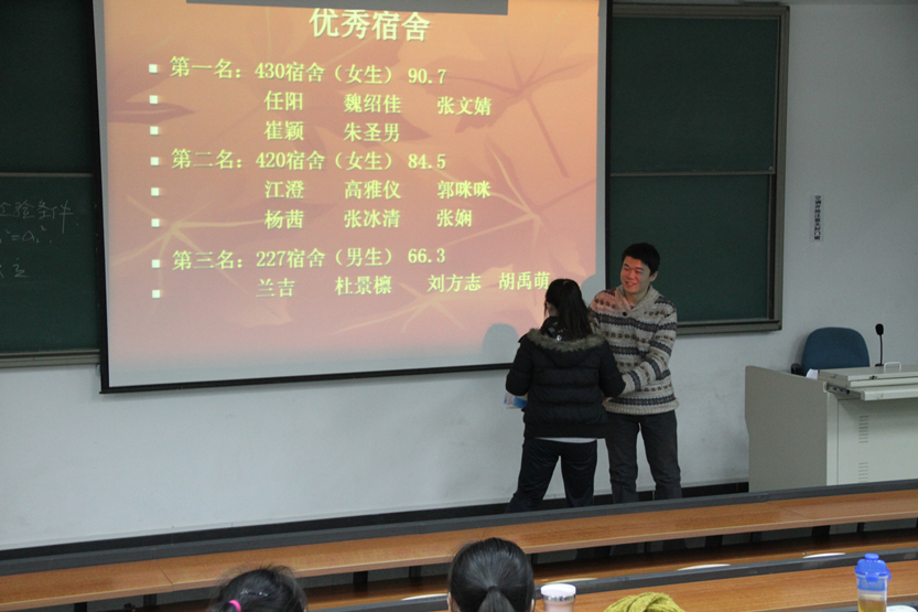 刘正老师在颁奖后,还对个别卫生状况差的的宿舍进行提醒,希望他们能够抽出时间将宿舍整理干净,为自己营造出一个优良的生活环境。
