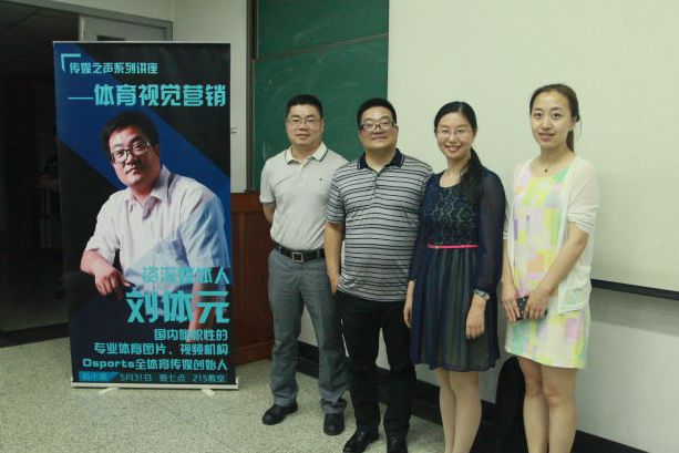 2016年5月31日晚7点,体育传媒系传媒之声系列讲座—体育视觉营销在教学楼215教室顺利举行。本次讲座的主讲人是osport全体育传媒创始人刘体元。出席本次讲座的嘉宾有体育传媒系广电教研室贺幸辉老师、系团总支书记、辅导员肖斌老师。