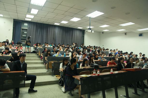 在一个简短的关于osport公司介绍后,他进入了本次讲座的主题,视觉营销。首先,他总的介绍了视觉营销的三种方式‘拍剪传’’,也就是拍照,摄像,和传播。他以奔驰在中网的宣传图片为例,告诉了同学们拍照应关注赞助商和比赛焦点;以阿迪宣传片,天津WTA宣传片,中网十周年宣传片为例向同学们介绍了四维工作网络覆盖式的拍摄方法;最后,以08年耐克的视觉营销案例,具体阐述了视觉营销的作用和方式。