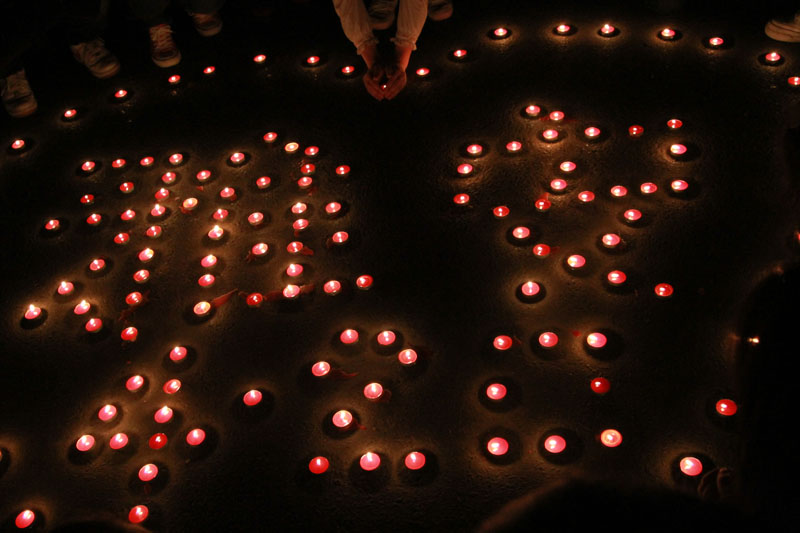 4月22日晚,2011级两位四川籍同学何宇、王燕舞共同发起了祈福雅安的活动,通过将蜡烛摆成一颗爱心框住“雅安 4.20”,点亮希望之光,映照星空, 很多2011级、2012级的同学主动加入到他们的活动中,同学们围绕着蜡烛进行祈祷,祈祷灾区救援工作顺利进行,人人安全,保佑灾区的人们不再受难,早日重建家园,祝福灾区人民的明天更加美好。大家用真诚心意,祝福雅安,帮雅安加油。一个个蜡烛点亮,点亮的是同学们的希望与祝福。