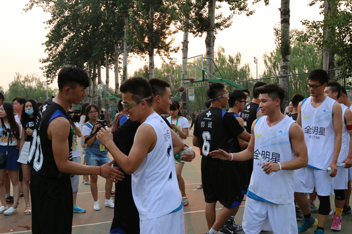 2015年5月24日下午,北京体育大学7号篮球场可谓是热闹非凡,第四届BUBA全明星赛在这里拉开帷幕。来自12所北京高校男篮代表队的24名“明星”球员齐聚一堂,为我们奉献了一场精彩的明星对决。最终经过4节苦战,身披白色球衣的白队以72:64惊险战胜黑队,取得胜利。来自中国青年政治学院的8号刘嘉圣同学荣耀本届全明星赛的MVP。