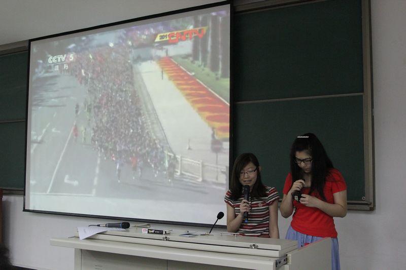 13组选手都选择了自己擅长且喜爱的体育项目进行解说。第一个出场的11级两位女将就为我们带来了一场不一样的马拉松解说。来自校广播站的刘洋以一口标准的普通话惊艳全场,而马雨沫对马拉松赛程的深刻了解更是让她俩的解说锦上添花。而之后上场解说篮球比赛的寇博文和杨镇羽,也为我们带来了一场勇士对阵马刺的精彩篮球赛加时解说。他们两人对比赛的全情投入,赢得了大家一直的掌声,而两人张弛有度的解说速度更让大家欣赏到了解说为比赛添加的魅力。刚看完篮球的解说,足球迷们便带来了他们的解说项目。汪景源与张麟为大家带来了让国人印象深刻的中国队对阵伊拉克队的亚洲杯预选赛的进球时刻解说,对球员动作的专业评价,富有感情且理性的点评,让这一组的解说尤为精彩,观众纷纷送出自己的掌声。而在他们之后上场的2012级王喆与秦斌,也毫不逊色,以一场曼联对阵曼城的德比大战解说,给大家带来了不一样的解说感受。两人略带激情的嗓音,让整间教室瞬间有了亲临现场的感觉。
