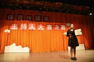 ,在教学楼地下报告厅体育传媒系第二届主持人大赛决赛成功举办。两届奥运会冠军,校团委副书记兼学生会秘书长陈中老师、体育传媒系体育新闻教研室主任贾静老师、中央民族大学优秀主持人吐提古丽、体育传媒系优秀主持人石珂,担任本次大赛的评委,莅临现场的嘉宾有体育传媒系党总支书记蔡文菊老师、团总支书记肖斌老师及