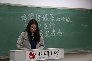 2016年12月19日19时30分,北京体育大学体育传媒系2014级学生党支部在305教室顺利举办党员发展会。发展会由2014级学生党支部书记刘正老师主持,共8名党员、4名预备党员参加会议。