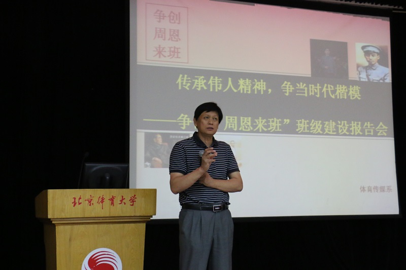 我系除毕业年级之外,三个年级均参与到争创第二届“周恩来班”的活动中。按照《北京体育大学第二届“周恩来班”争创评选方案》,八个申报班级按照抽签顺序,依次进行报告及展示,同时陈述申请理由、创建计划和工作设想。
