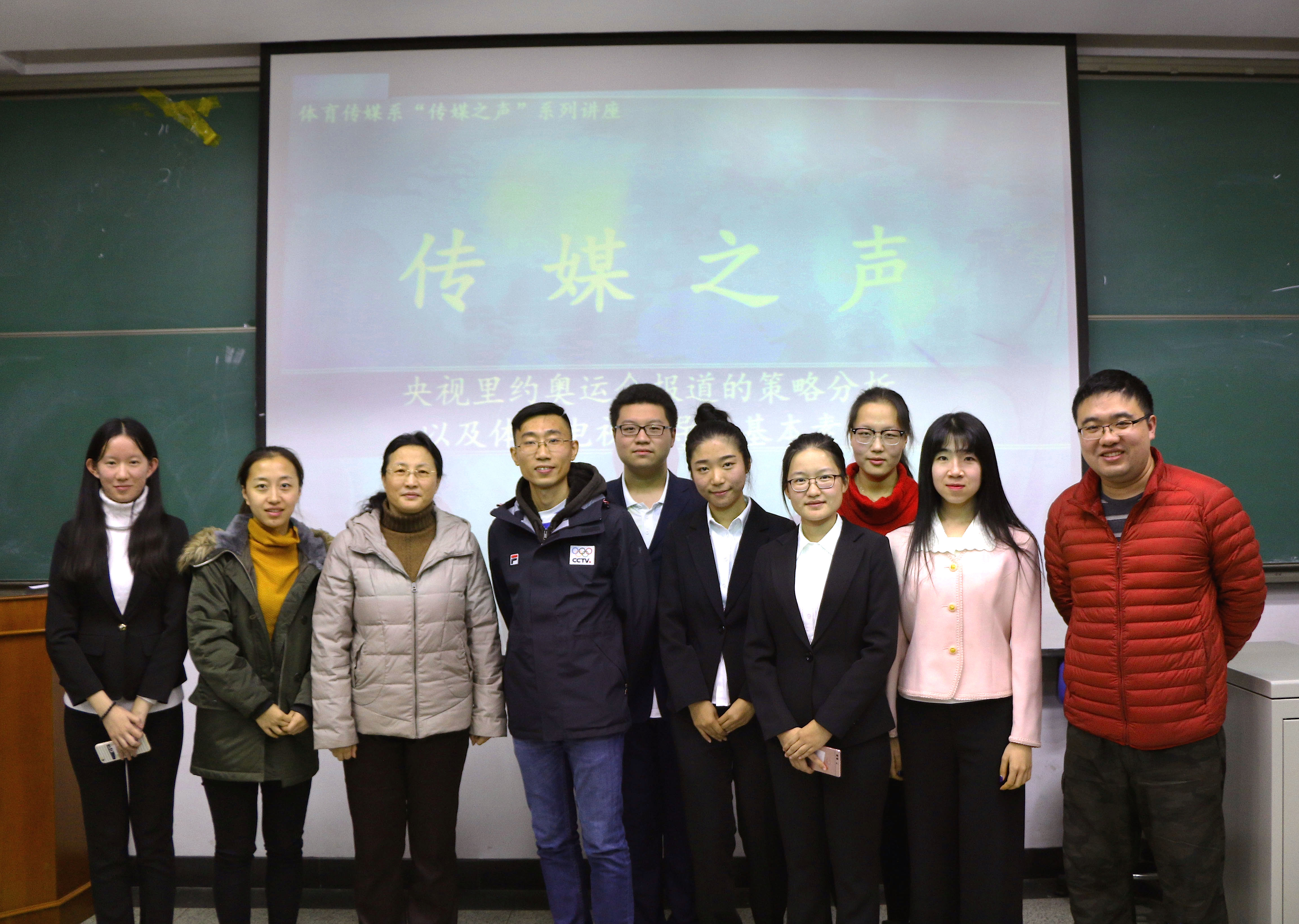 2016年10月31日晚19:30,体育传媒系本学期“传媒之声”讲座在教学楼315教室举行。本次讲座请到的是我系优秀毕业生,央视体育频道资深编导,现任央视体育频道节目部责编的曾磊师兄与同学们进行交流。体育传媒系党总支书记蔡文菊老师,体育传媒系团总支书记肖斌老师,广电教研室夏天老师出席了本次讲座。