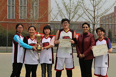 比赛结束之后,举行了颁奖仪式。本届女篮比赛最有价值球员称号授予了12 级23号球员苏狄,球场上的她在攻防两端极具统治力。北京体育大学体育传媒系党总支书记蔡文菊老师为女篮冠军12级颁奖,体育传媒系12、13级辅导员肖斌老师则为13级女篮颁奖。