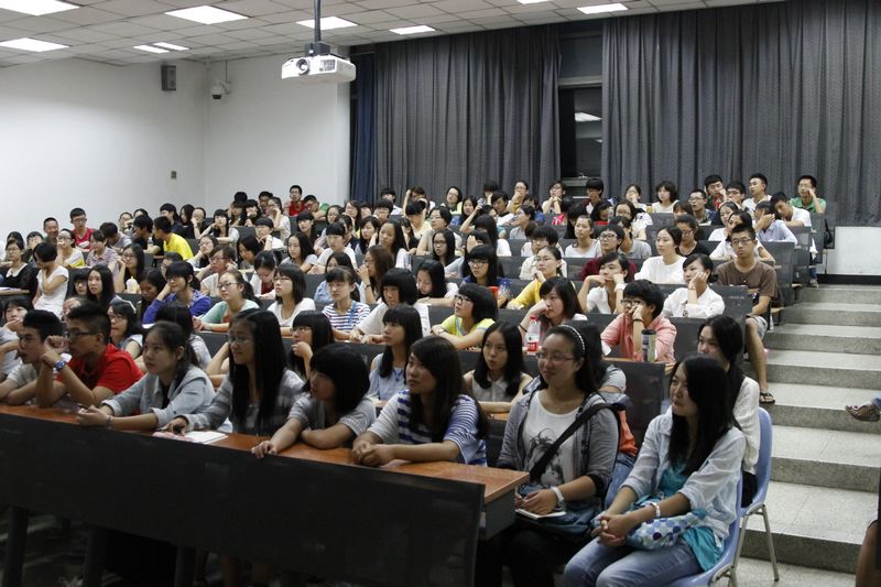 为促进体育传媒系的发展,丰富体育传媒系的教育体系,体育传媒系于2013年下半学期在原有新闻学专业的基础上增设了广告学专业,学生人数也由原来的120人左右增加至180人左右。原本宽阔的阶梯教室座无虚席,甚至有部分同学不得不另外搬椅子坐在教室的两侧。由于明天是教师节,体育传媒系2013级的全体同学在讲课开始之前,向张玉田老师提前表达了节日的祝愿。