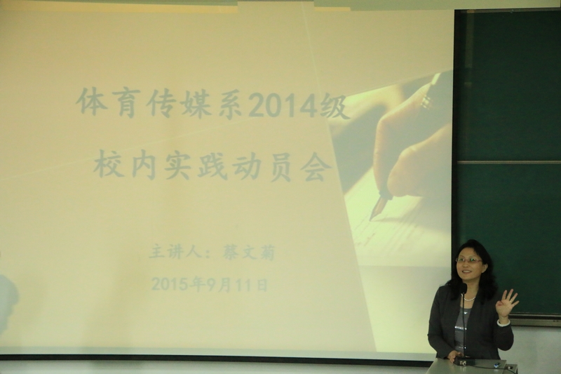 今年是我系校内社会实践开展以来的第十个年头, 9月11日下午四点,我系在教学楼215召开2014级校内实习动员大会。系党总支书记蔡文菊老师、2014级辅导员刘正老师出席大会。