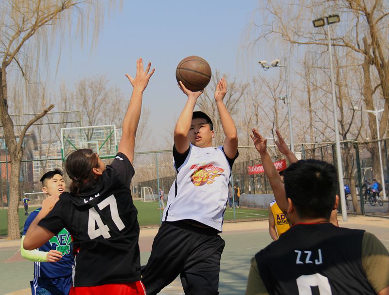 北京时间3月14日中午12点整,体育传媒系春季篮球联赛揭幕战正式打响,对阵双方为12级男篮和14级男篮。经过激烈精彩的一番较量,仅有五人应战的卫冕冠军12级男篮展示了冠军底蕴,更胜一筹,最终以45:38击败14男篮夺取开门红。