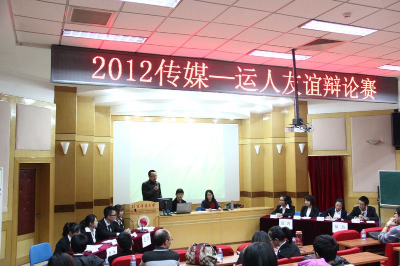2012年12月6日晚7点,一场以“温饱是否是道德的必要条件” 为辩题友谊辩论赛在科学楼报告厅展开,正方体育传媒系与反方运动人体科学学院。传媒系主任张玉田老师、传媒系团总支书记黄诗薇老师、运动人体科学学院团总支书记毛文君老师出席观赛。本次比赛特邀了语文教研室吴志强老师、思政教研室周学政老师和周文莲老师担任此次比赛的评委。