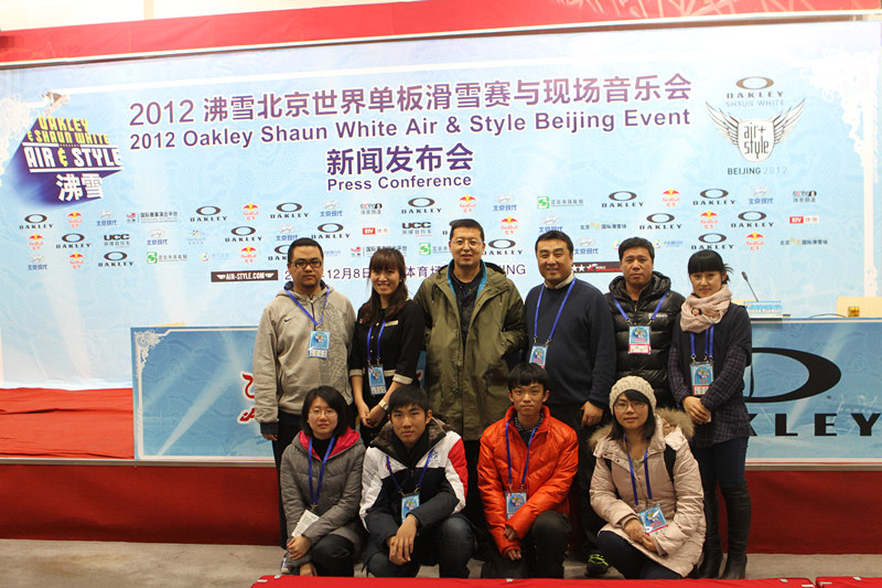 2012年12月8日下午及晚间,2012“沸雪”北京世界单板滑雪赛在国家体育场鸟巢内举行。体育传媒系2011级严涵、张琪和2012级张曼源、张思聪四位同学,在我系新闻教研室刘亚平老师和系团总支书记黄诗薇老师的带领下,参加了“沸雪”媒体运行的志愿服务。