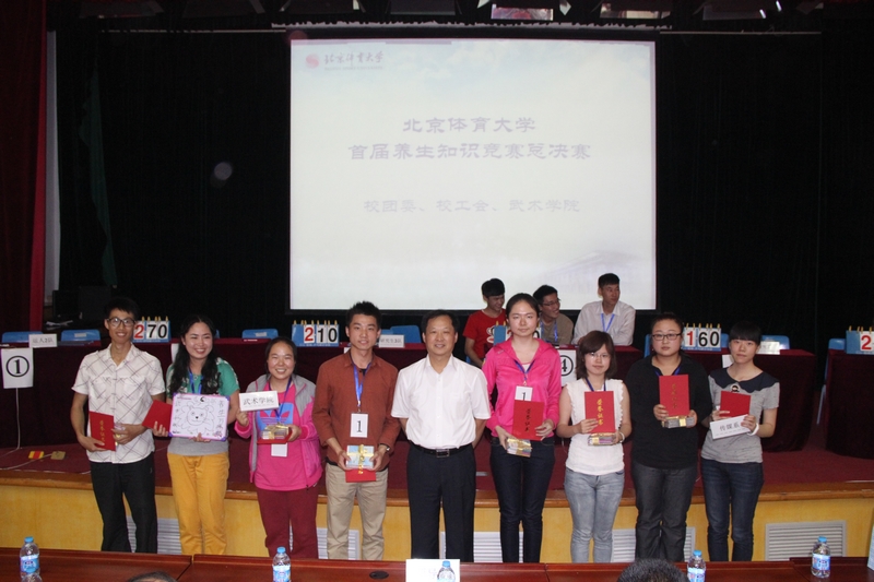 2013年6月6日晚7点半,北京体育大学首届养生知识竞赛决赛在大学生活动中心举行。我系由2011级赵婷玉、2011级廖爱玲、2011级李雪濛、2012级高鞅四名同学组成的队伍代表我系出战,最终以总分第二的成绩获得本场比赛的二等奖。值得一提的是,在预赛第一轮比赛中,我系代表队是以100%的正确率和高出第二名20分的绝对优势晋级到决赛中,取得了较好的成绩。我系党总支书记蔡文菊老师、2012级辅导员肖斌老师出席并观看了比赛。