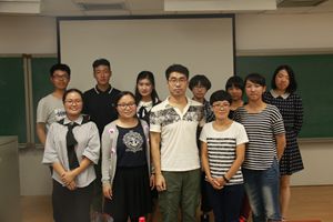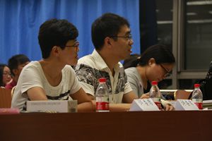 教室落下帷幕。决赛特邀外语系三位专业老师担任评委,团总支书记肖斌老师参加了本次大赛。
