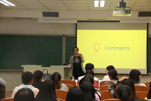 为主题进行演讲。有了初赛时的经历,选手们也积累了经验,每位选手都表现得更为出色。为了能够充分展示选手们的英语水平,决赛增加了评委提问这一环节,面对评委老师的分别提问,八位选手都能从容应答,并各自表达出个人对问题的独到见解。赛后,评委老师对选手们的表现分别进行了点评,并针对演讲环节提出了有针对性的建议与意见,使选手获益匪浅。