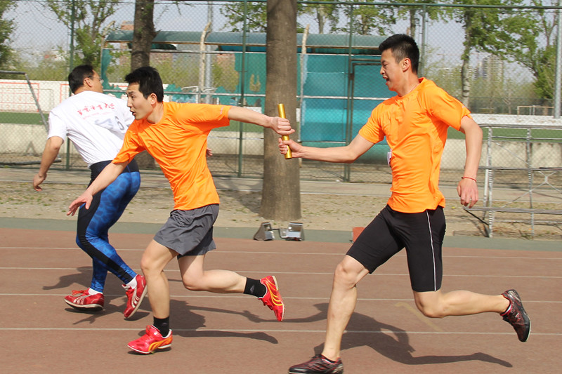 在乙组4*400男子接力中,在2010级公关班四位同学的通力合作下,我系拿下了第三名。当运动员刚一站上跑道,同学们又纷纷拿出最嘹亮的声音,为运动员们加油打气。枪响了!第一棒的运动员奋不顾身的向远处跑去,一开始便处于较为领先的位置。一圈跑完,我们占据了第二的好名次。第三棒的危机出现在弯道处,好在运动员并不放弃,在第四棒的时候奋力紧追,终于在最后时刻超越了前面一位运动员,取得了第三名的好成绩。
