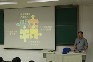 讲座内容围绕理性选择与严峻现实、行业发展的挑战与机遇、把握理念与学好专业、理论需与技能并重四个方面展开。张玉田老师提出“体育为本,新闻为用”的专业理念,同时通过举出社会生活中种种鲜明的例子,生动形象地讲述了学习与实践的重要性。讲座中强调理论知识是支撑实践的重要基石,实践是技能锻炼的重要途径,只有通过学好专业知识,锻炼专业技能才能够提成自身知识水平,提高专业素质,为做一个成功的传媒人积攒深厚的功底。张玉田老师提醒新生,要学会利用一切可以利用的资源去学习,不要局限于校内的学习资源,争取在日后成长为一个知识面与眼界都能更为宽广的传媒人。