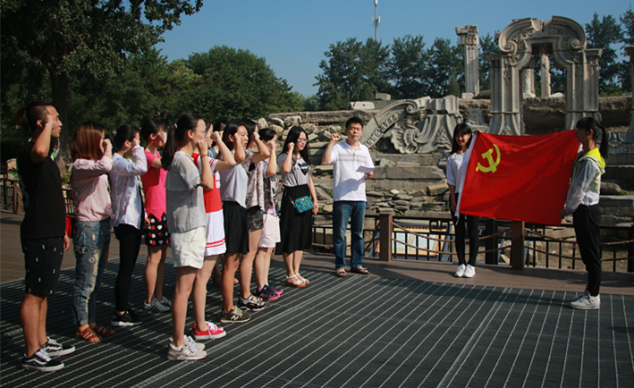 2016年7月2日星期六上午八时,在中国共产党成立95周年纪念日之际,我系2014级学生党支部在支部书记刘正带领下来到圆明园进行党日活动,并进行宣誓。