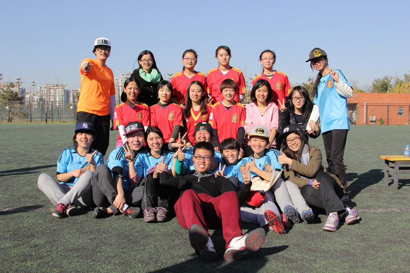 这场比赛吸引了不少的观众,体育传媒系党总支书记蔡文菊老师、2012兼2013级辅导员肖斌老师和助管冯瑶老师也来到现场观看比赛并为队员们加油。赛前的球场便充满了紧张的气氛,在激昂的音乐声中双方队员积极热身,丝毫不敢轻敌。