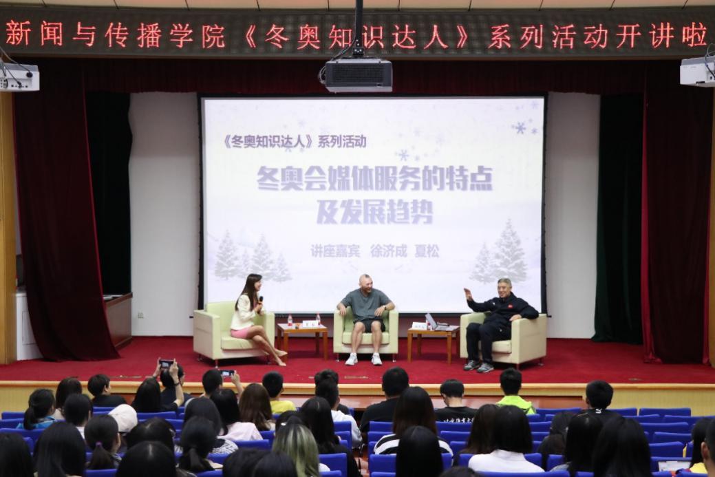 2019年5月14日19时,新闻与传播学院主办的《冬奥知识达人》系列活动在师统讲堂正式拉开帷幕。知名媒体人徐济成老师和知名体育经纪人夏松老师作为开讲嘉宾就冬奥会媒体服务以及体育展示的特点及发展趋势为到场师生带来了一场丰富的知识盛宴,校党委副书记邢尚杰、新闻与传播学院党总支书记左琼、校教育基金会副秘书长刘正老师共同出席。