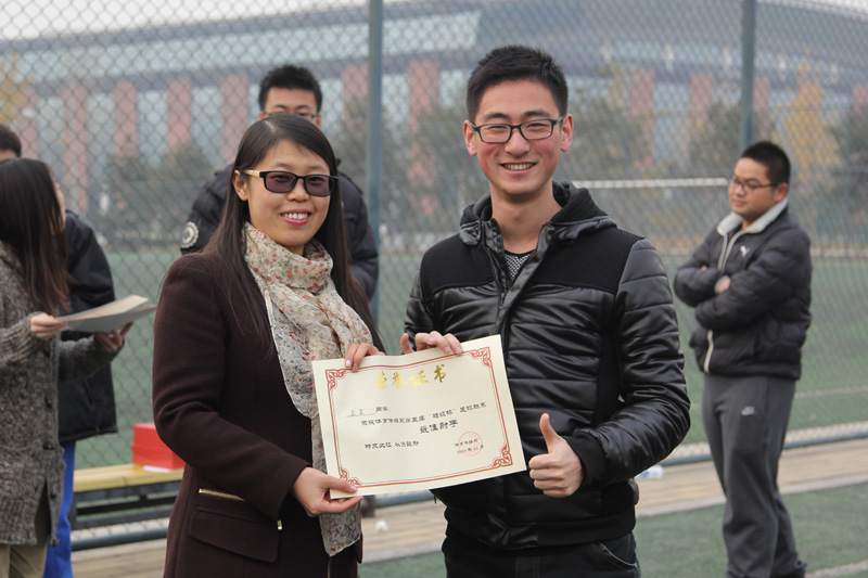 在颁奖时刻,10新闻的欢呼声响彻球场,他们拥抱,呐喊,甚至热泪盈眶,这一刻冠军属于他们。这也是10新闻最后一次参加超级杯足球联赛,对于他们来说这不仅仅是足球赛,这更是他们大学生活充满感动的时光与回忆。虽然本场比赛只有一粒进球,但每位球员的表现都可圈可点,10新闻的艾晓禹与孙继钢更是获得了最有价值球员的称号。2010级辅导员徐欣老师将奖杯及奖状颁发给各个球队及球员并表示祝贺。至此,本届超级杯足球联赛也落下帷幕,接下来还将开展的“超级杯全明星友谊赛”(暂定名)也请大家继续关注。